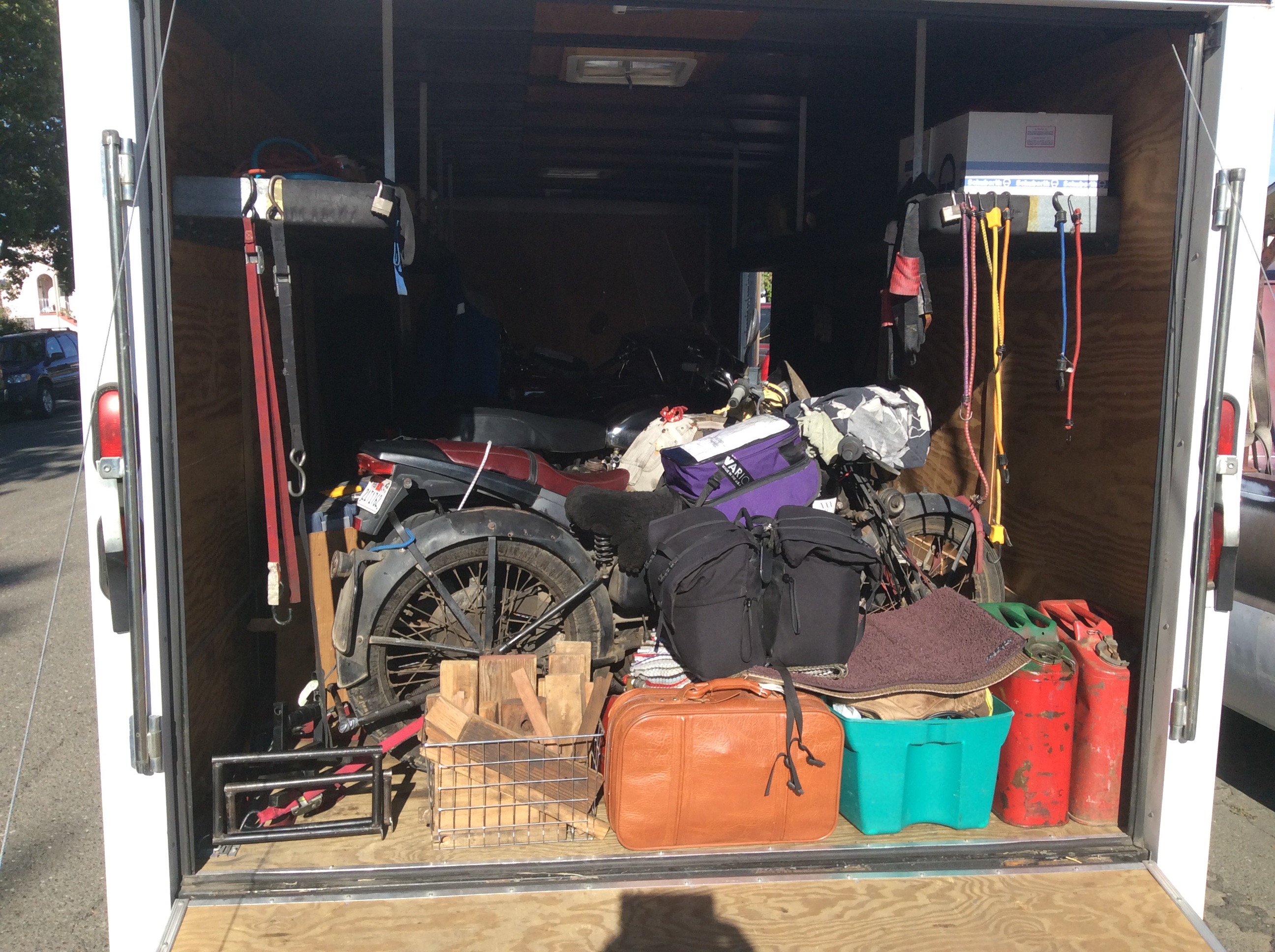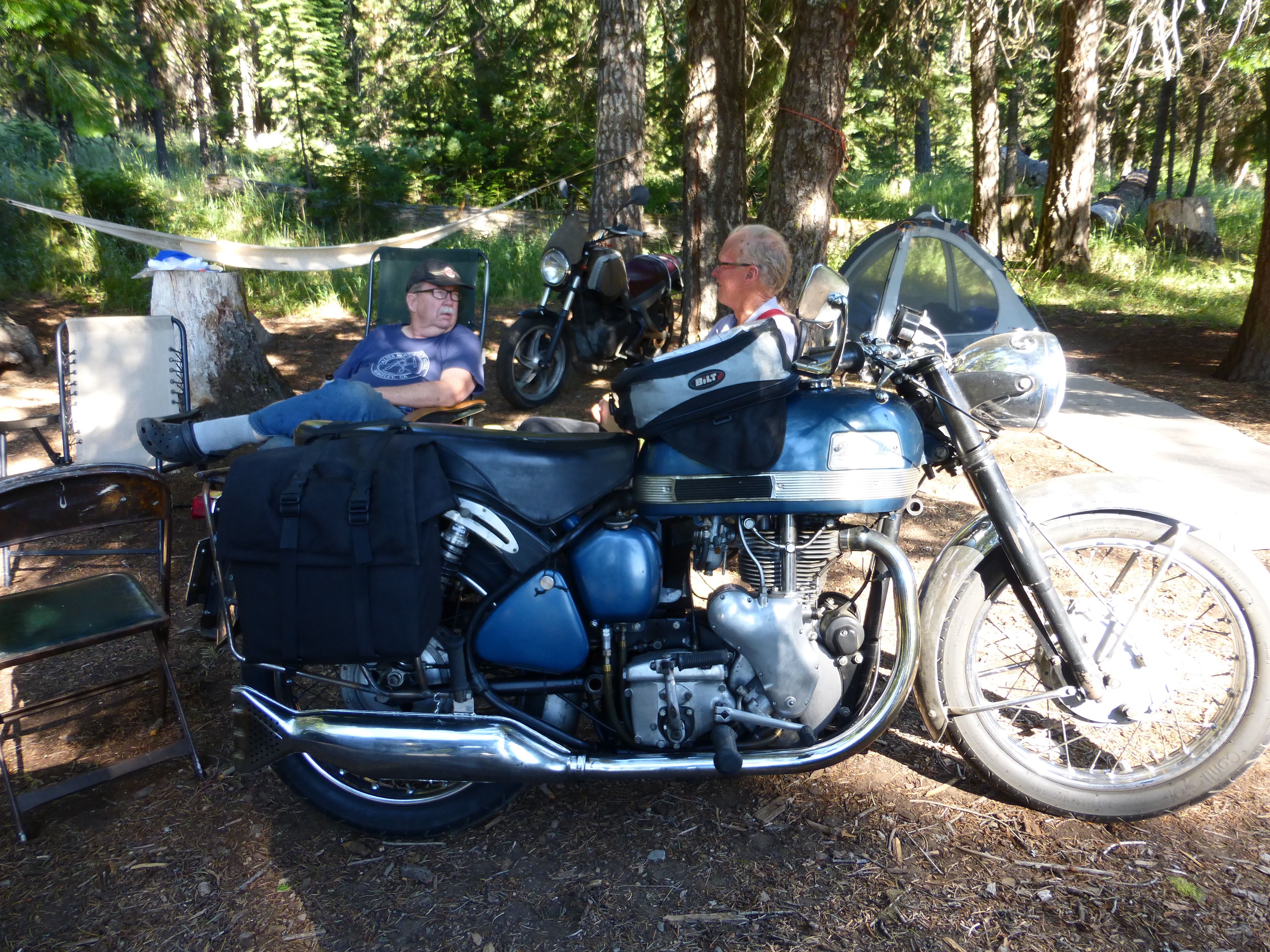 At this stop, Jeff Ward caught up with us. According to rumor, he’d been seen at a gas station in Napa with his bike apart and oil everywhere. Paul Zell and Julie who were driving the chase truck went to check out the scene. The problem was identified as a loose gasket. Paul had the fix – an empty pizza box. Cardboard was put into service and once more oil flowed where it should in the bike.