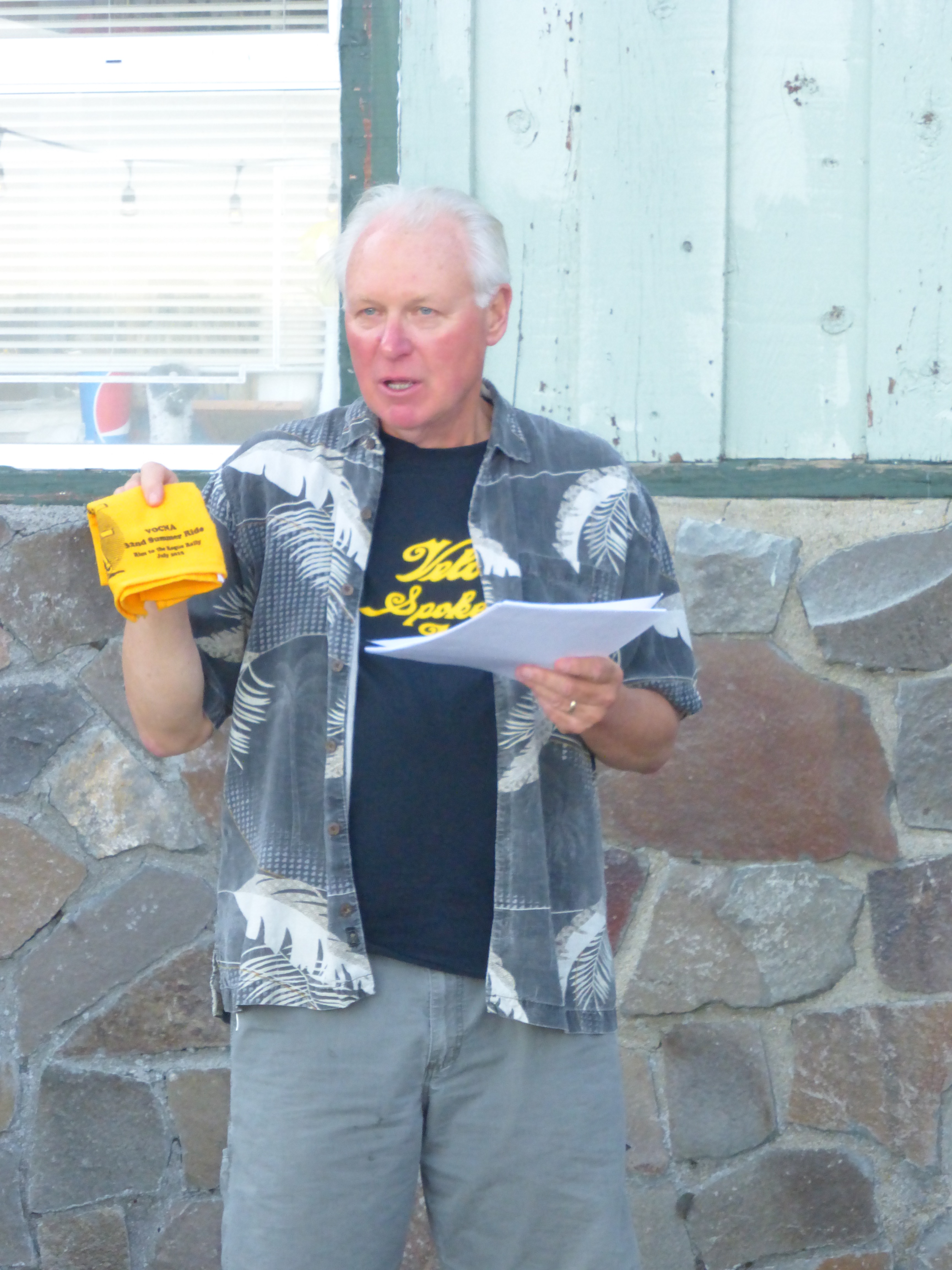 There was smooth riding after that across highway 29, up highway 128 past Lake Hennessey to Chiles Valley Road where Fred Mork’s bike stalled. He rolled safely to a shoulder on a straight section of road. While Lance Leavey stayed to help identify the problem, I rode on to catch Jeff Scott who is familiar with Fred’s bike. (Sometimes it feels like my role in life is to direct Jeff.) Anyway, I caught up to Jeff at Pope Valley, a scheduled stop. He went back to help Fred, but luckily didn’t have to ride far. Fred had found the problem: a high tension lead had become unseated. He fixed it enough to finish the ride and return to his home.