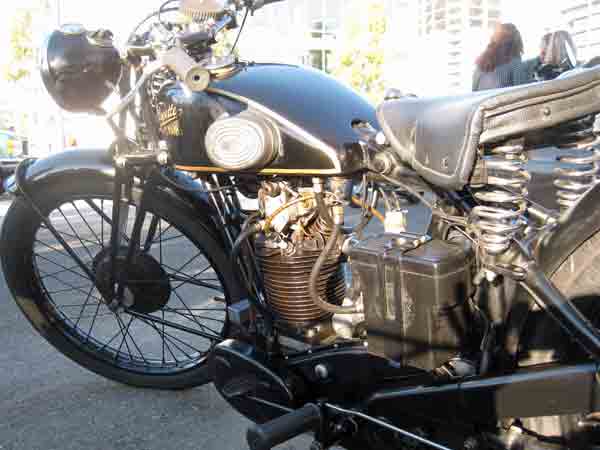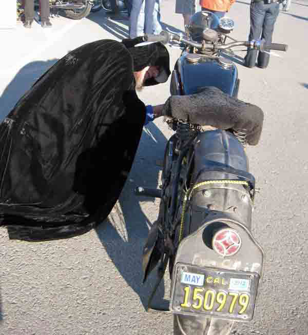 On the Sunday before Halloween, around 300 bikers gathered to show off their clutch and throttle skills throughout the steep hills of San Francisco. What is especially remarkable is that the majority of these bikes were built before 1974. Many were much older. My riding partners included a Velocette Venom from the early 1960’s and a Velocette two-stroke GTP from 1946. It is hard to believe how much knowledge and coordination is required to ride these older vehicles. Suicide clutches, kick-start ignition, and piston seizures were common concerns.