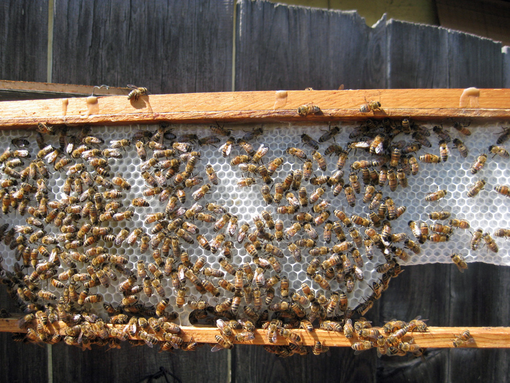 The biggest surprise was in the hives. All three hives have been very busy. We’ll be able to harvest (steal) honey soon. And where there isn’t honey, there is the whitest comb I’ve ever seen.