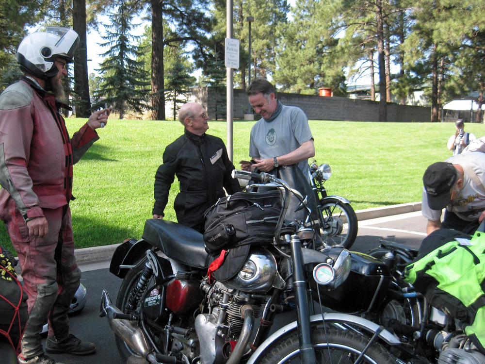 At the end of the day, people traded stories, worked on their bikes and relaxed. Our president, Jim Abbott was seen on the side of the road with three of the local police. Turns out he had run out of fuel right on the edge of town. Since he was close to a gas station, he decided to push the bike in for fuel. However, some good samaritan reported a motorcycle accident. Besides the three police, one ambulance and a fire truck turned up before Jim could call off the forces. A president’s job isn’t easy.