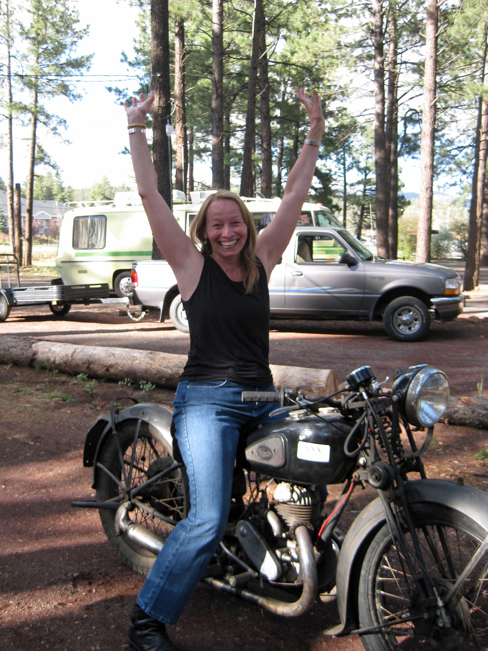 In camp, Gwen rode the 1946 GTP, her first time riding a motorcycle! And we celebrated Jeff W.’s birthday.